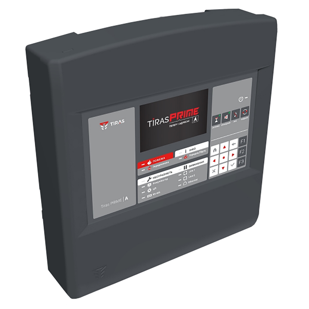 Тирас PRIME A — прибор приемно-контрольный пожарный. 500 зон пожарной сигнализации. 2 контролируемых выхода питания периферийных устройств напряжением 24В.